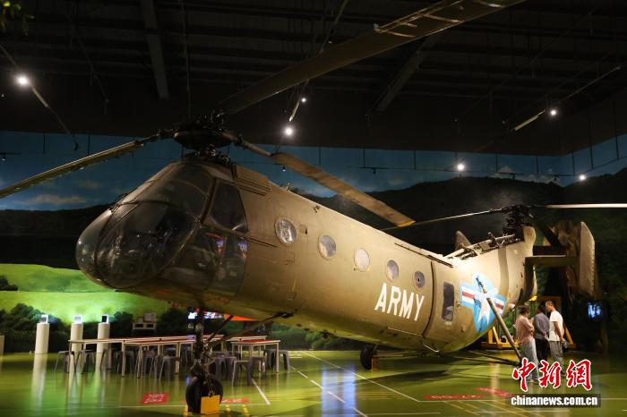 10月6日,游客走进位于江西省景德镇市高新区的江西直升机科技馆参观H-21直升机。中新社记者 刘占昆 摄
