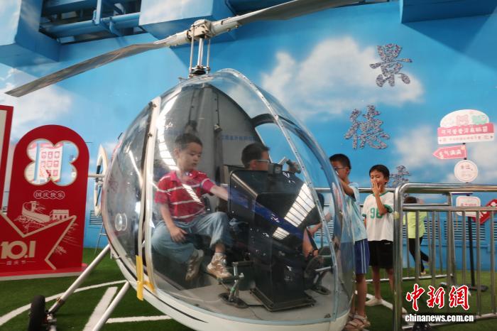 10月6日,孩童在位于江西省景德镇市高新区的江西直升机科技馆参观体验。中新社记者 刘占昆 摄